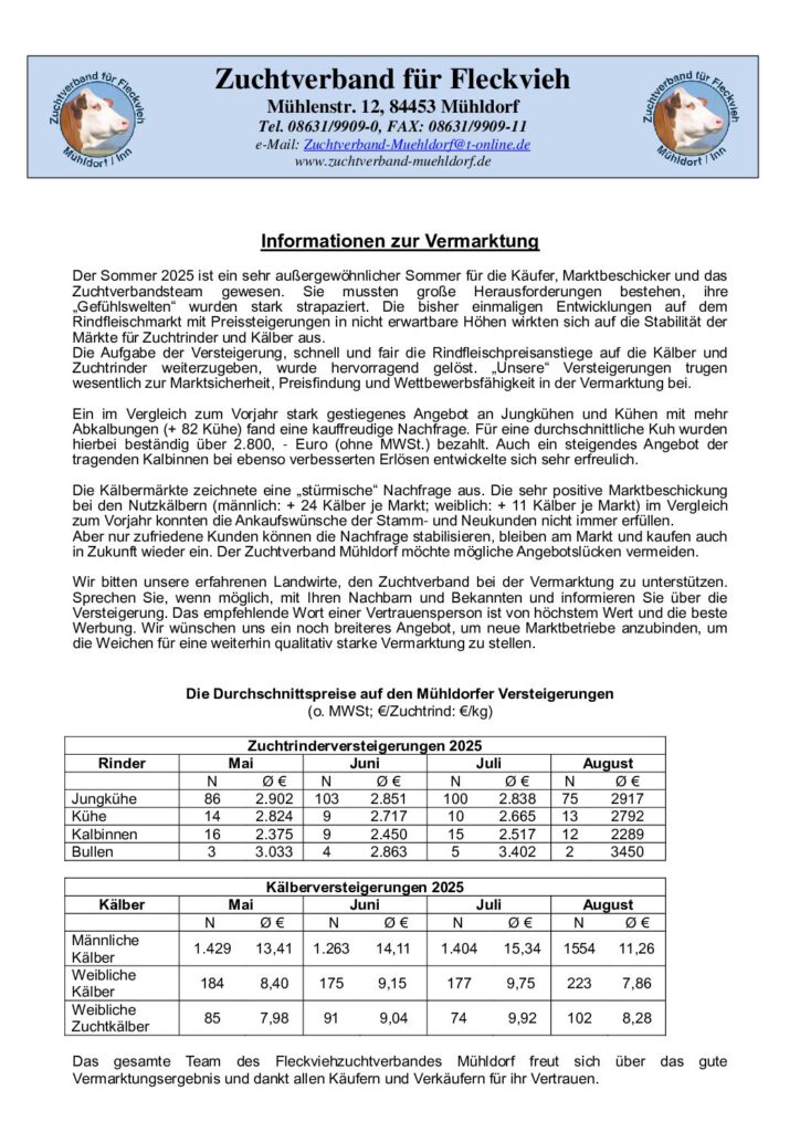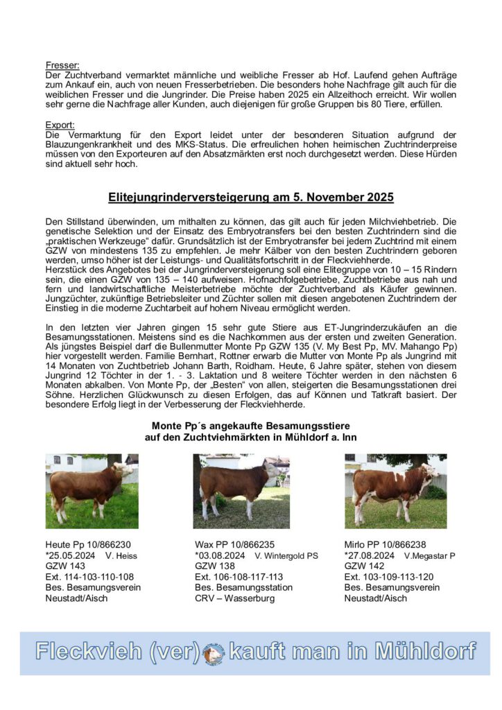 Der Zuchtverband Mühldorf ist Ihr kompetenter Partner rund um die Rinderzucht und Vermarktung. Seit vielen Jahren setzen wir uns für eine erfolgreiche und nachhaltige Zucht ein, um gesunde, leistungsstarke und wirtschaftliche Tiere zu fördern.